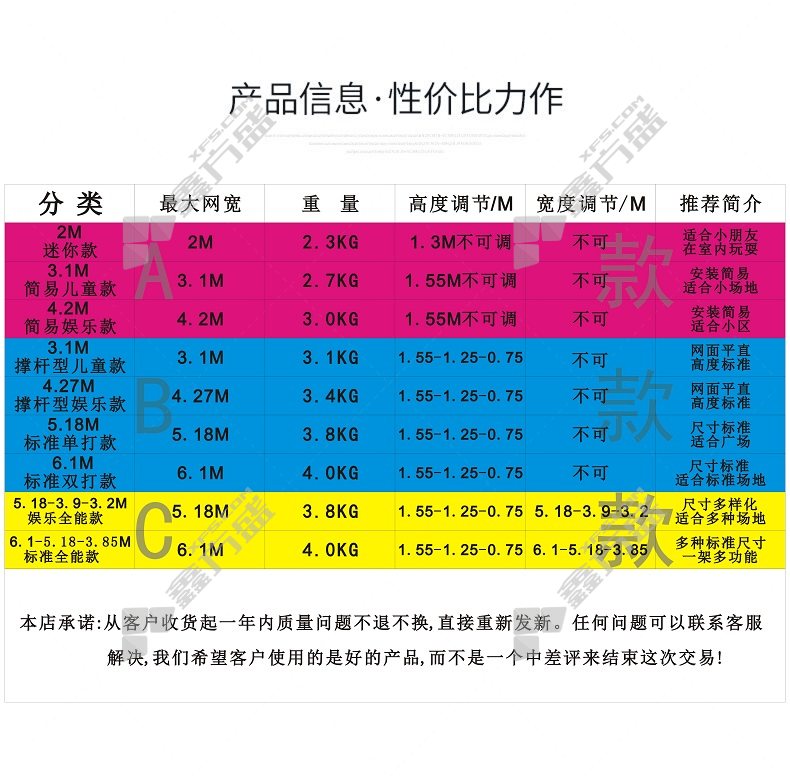 商品规格:双打6.1m三档调高
