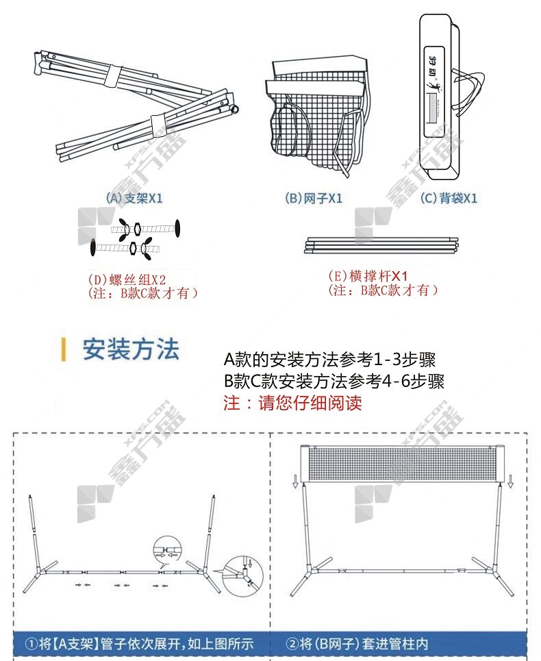 包装清单:羽毛球支架*1套